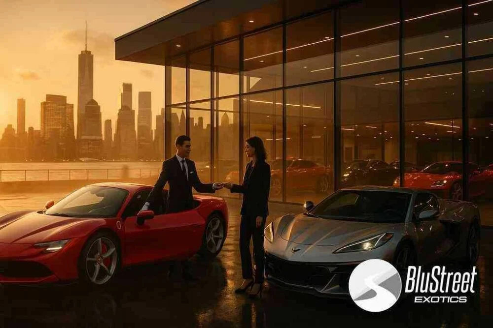 BluStreet Jersey City has become synonymous with VIP exotic car hire in Jersey City thanks to its curated mix of performance, prestige, and personal service. VIP exotic car hire in Jersey City fits professionals, travelers, and speed enthusiasts who demand more than ordinary transportation. Each arrival at the modern showroom is choreographed to awaken your senses, from the scent of fine leather to the soft hum of idling V-8 engines. Guests immediately notice how seamlessly staff weave hospitality with technical mastery, briefing you on torque curves while offering chilled refreshments. This comprehensive welcome sets expectations high, foreshadowing an unforgettable automotive luxury experience.